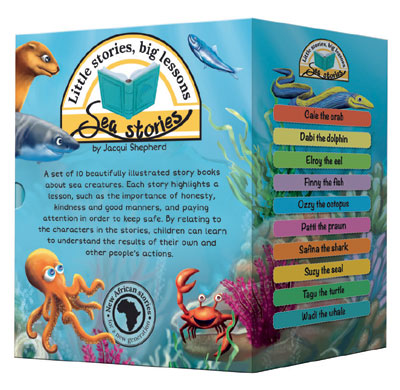 books about sea creatures. Each story highlights a lesson, such as the